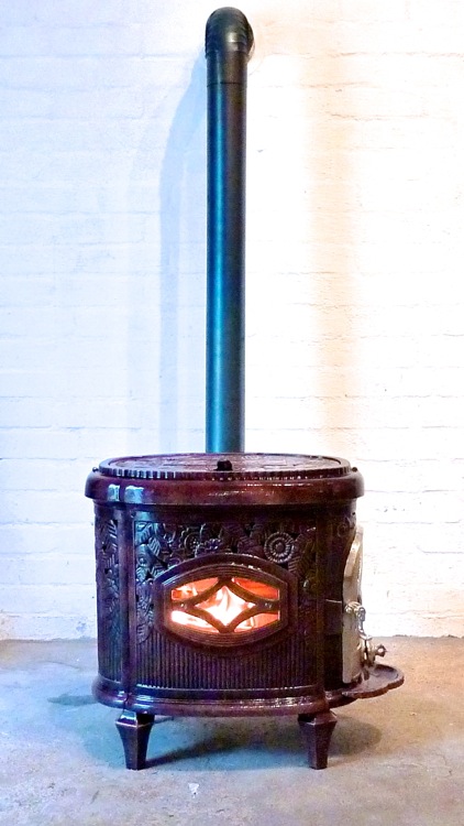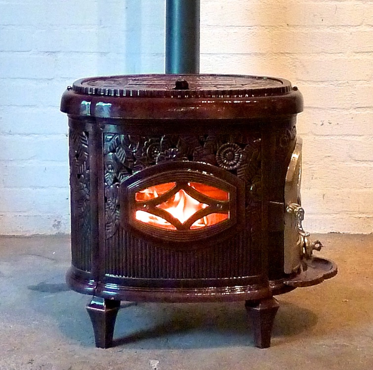 Ein „Le non pareil“ Jugendstil Kaminofen in dem warmen Farbton „Aubergine“ von Deville & Cie.